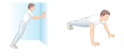 Stand about 50cm - 100cm away from a wall with your palms flat on the wall at about shoulder height
