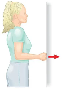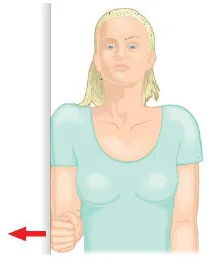 Stand facing a wall with your elbow bent and the side of your hand and arm up to the elbow resting against the wall